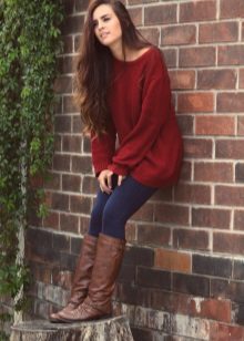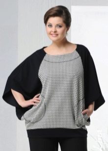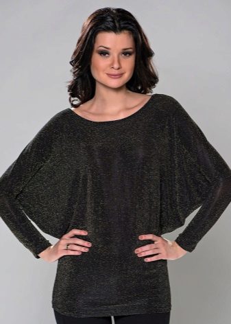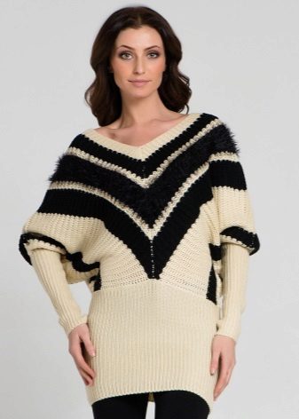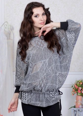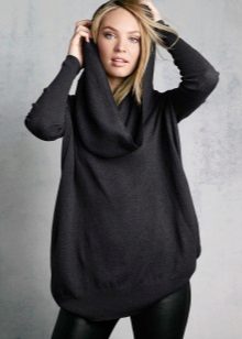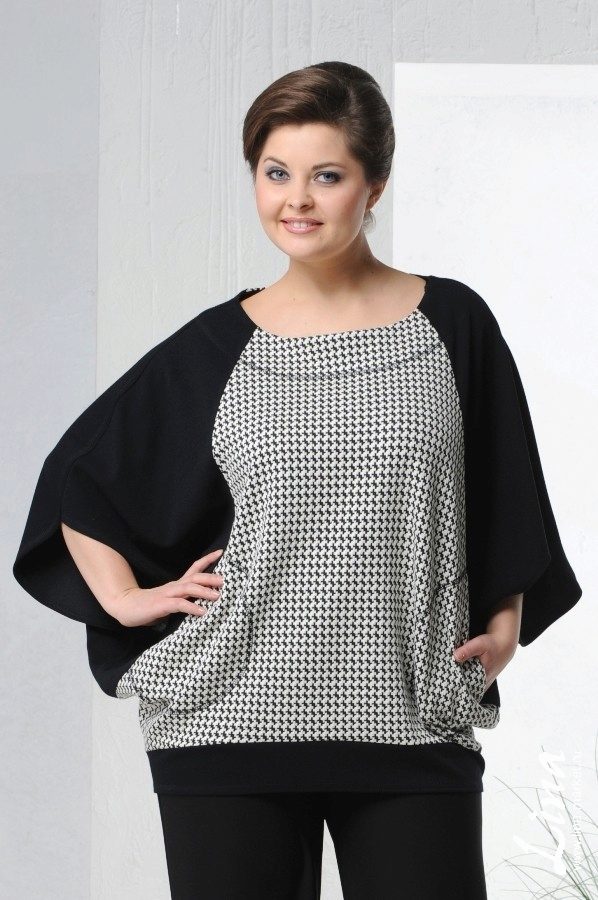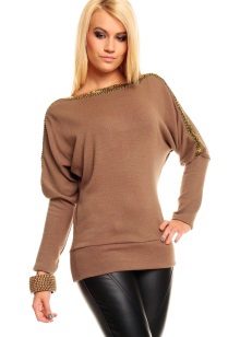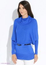 Another suitable option for the full-bodied ladies is a retro model with bat style sleeves, complemented by a wide, large-knit elastic band on the hips. Such a knitted product will successfully mask all the flaws of the figure, successfully smoothing the volumetric contours of the silhouette, and emphasize the femininity of their owners.