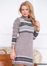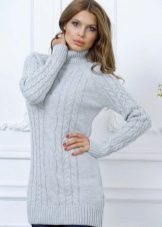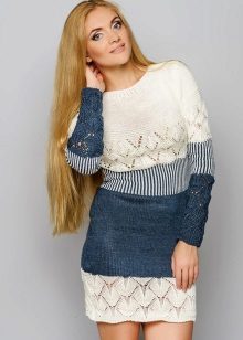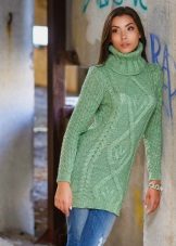 The product of embossed knitting is perfectly combined with a long skirt made of thin and smooth knitted fabric. It should be chosen to match the tunic or in diametrically opposite colors.
