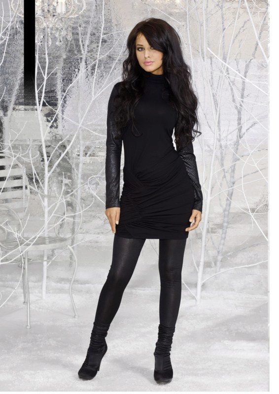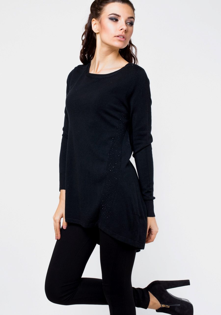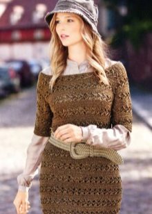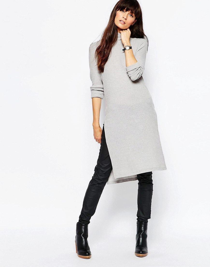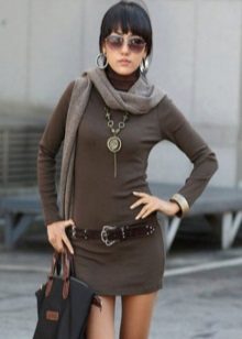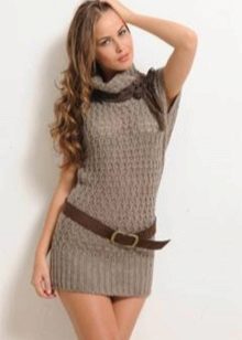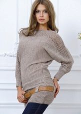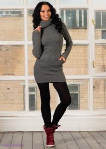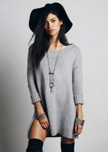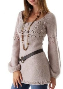 Medium length knitted tunics look great with a pencil skirt. If the model is of decent length, then it can be worn as a dress. In winter, under a tunic is better to wear tight tights of black or flesh-colored. Model of free cut knitted from thin yarn can be girdled with a leather strap to emphasize the waistline. In this outfit will look even more attractive if the belt is placed just below the waist.