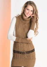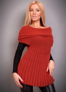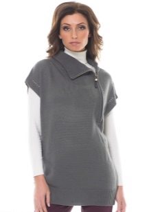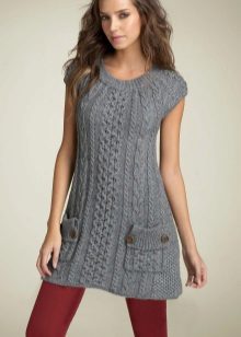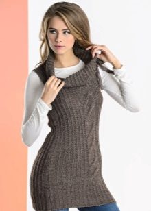 In the fall tunics with short sleeves or without them are quite popular. Under such products wear a turtleneck or badlon. Knitted things with patterns and knitted patterns in the form of braids are very popular.