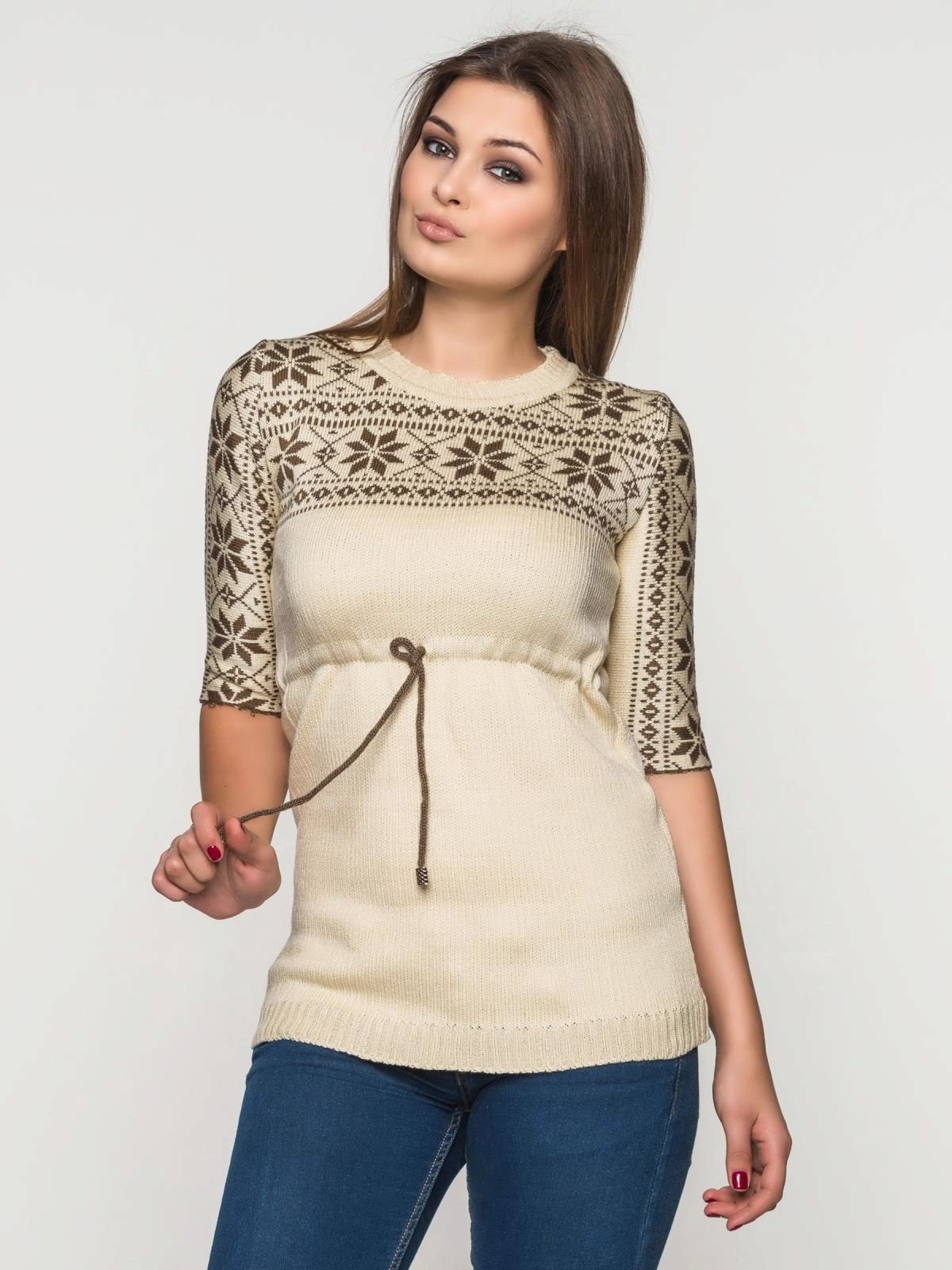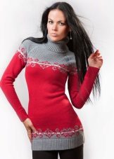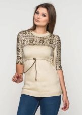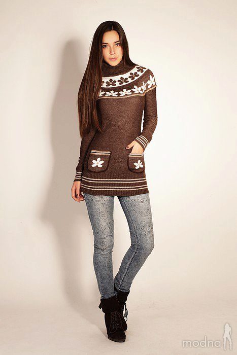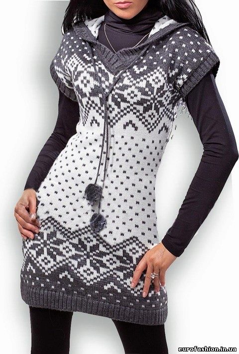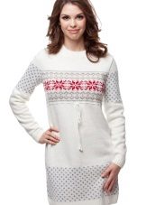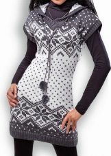 In winter, models with a Norwegian pattern tunic are especially in demand. These are traditional animals and snow motifs that are at the top or bottom of the product, as well as on the cuffs of the sleeves. If the tunic has a hood or a large collar, then in the offseason it can be used for its intended purpose, and in the winter cold it will make a wonderful additional warming for the neck and throat.