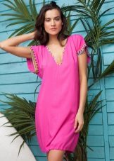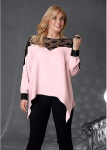 Products made of thin knitted fabric with synthetic additives are perfect for walking in the summer heat. From this material go luxurious draped tunics. They look great in monophonic performance. White lace tunics are most popular while relaxing on the beach.
