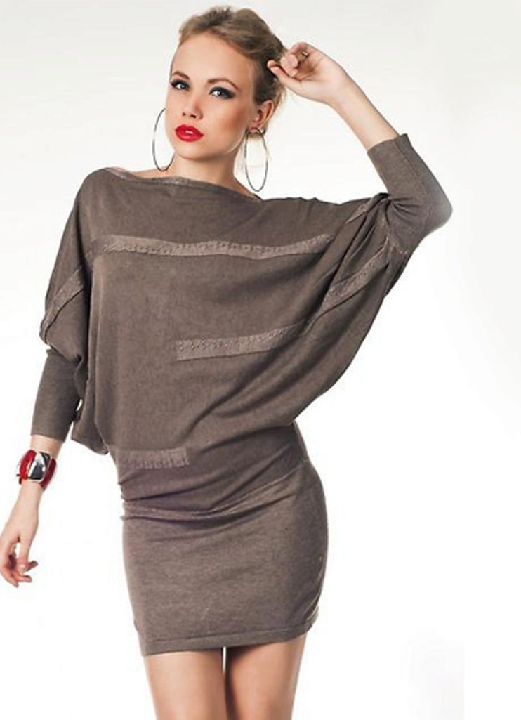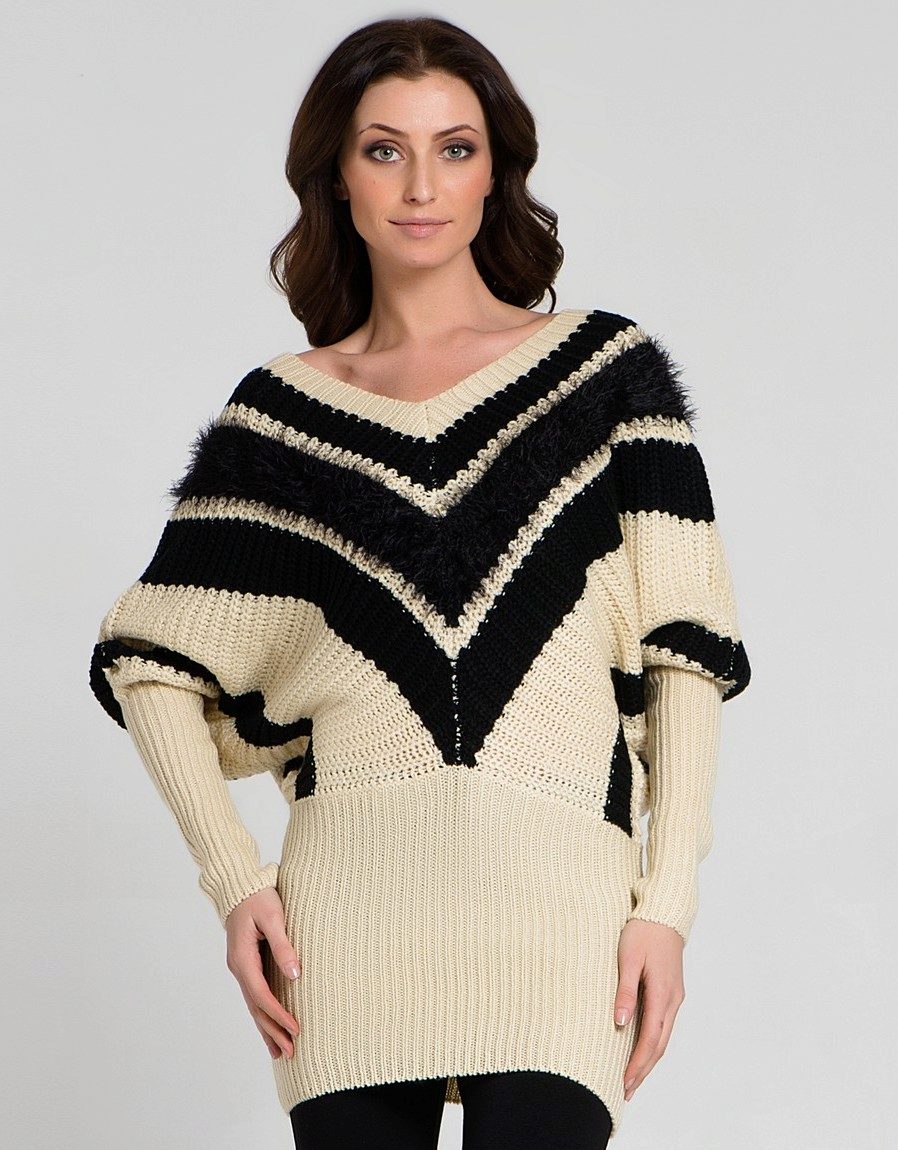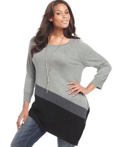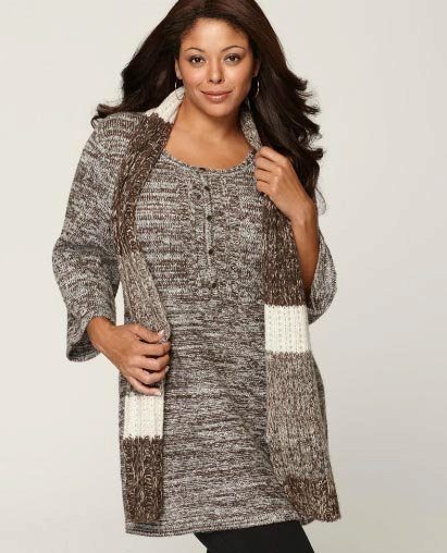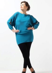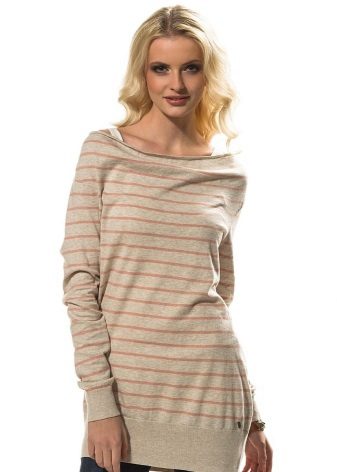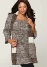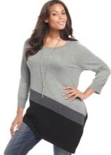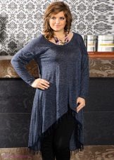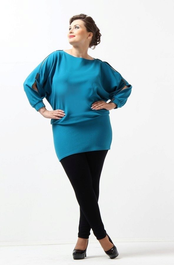 Ladies with magnificent forms when choosing a knitted tunic should sharpen their eyes on the density and structure of knitted fabric. A tight fitting model with a highly convex pattern is unlikely to give charm to a full figure. But knitted tunics with a high waist of the A-silhouette or in the Empire style will skillfully hide those extra pounds in the abdomen and sides, as well as they are able to balance the luxuriant hips. Not too deep V-neckline will focus on the luxurious chest.