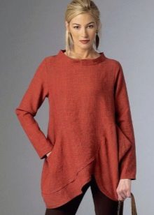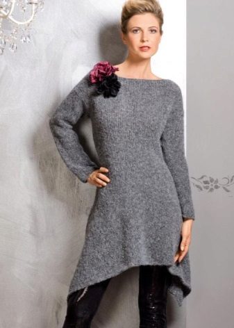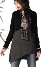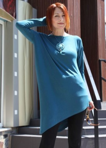 Knitted tunics in a minimalist style should also be attributed to the category of new products this season. Such products are characterized by a strict restrained cut, mainly monochromatic paints and the absence of any decor. The asymmetry of the tunic styles also does not give up its current positions for several seasons in a row. It seems that for a long time we will be watching the abundance of unusual shapes and disproportionate lines in such products.