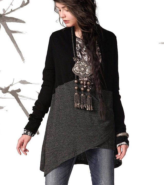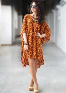 The boho tunic can be recognized by the rather original hem - it is decorated in a semicircle, and there are both concave and curved versions.In addition, for this model, asymmetric sections are common, producing the effect of carelessly dissolved matter. The silhouette is mostly straight or in the shape of the letter “A”.