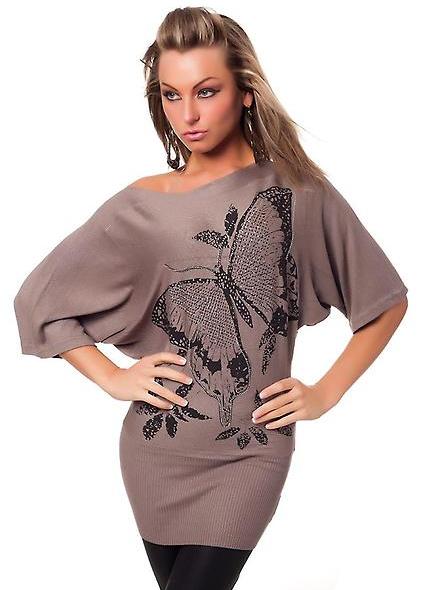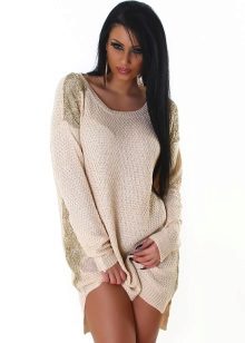 If you do not like to rivet the curious glances of others, then choose tunics of softer pastel shades - beige-brown, light pink, sky blue or steel gray. For evening promenades, it is recommended to purchase a knitted tunic of silver or golden hue.