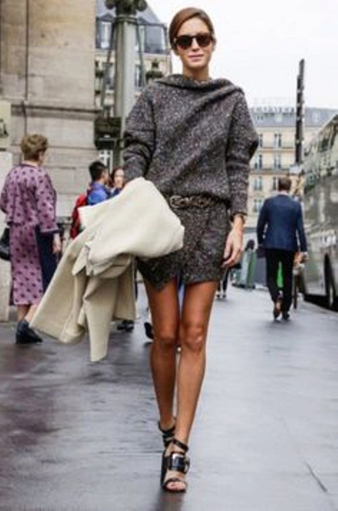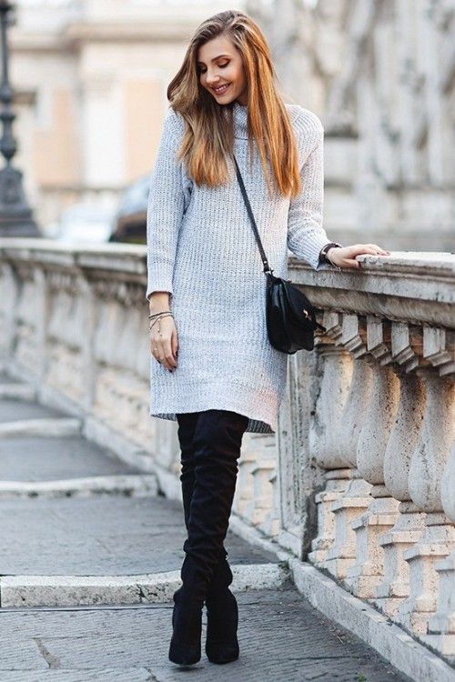 It is a mistake to believe that knitwear cannot be combined with a business style. In any weather, a white, black or gray knitted tunic will perfectly complement the office look.