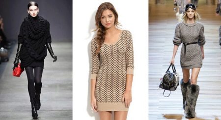 Knitted items, decorated with knitted braids, braids and other embossed patterns, make the dress feminine, inimitable and original.