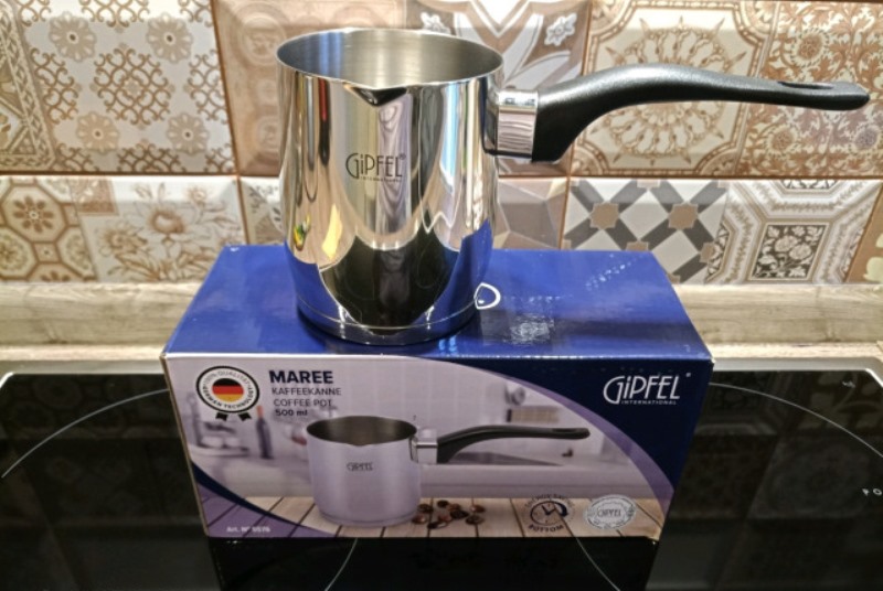 In Pyatigorsk, a compact jazz is made, decorated with a minted image of a bunch of grapes that does not exceed 120 milliliters. Double bottom thickening allows you to comfortably use it on an everyday basis. Stainless Steel Turks Gipfel brands designed for induction cookers. The handle is made of a material that does not heat up during use, which greatly simplifies the process of operation. The volume of the vessel ranges from 170 to 680 milliliters.