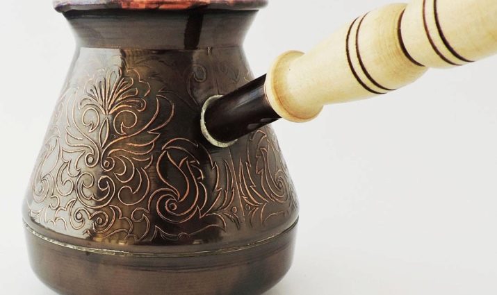 - The handle of the Turks should not conduct heat. Usually it is made of clay or wood, but metal handles should be immediately discarded because they heat up very quickly. It is not always convenient to take the tack, but during this time the coffee can already “run away”.