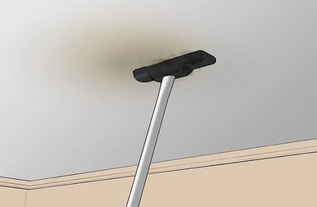- First you need to wipe the damaged area with a damp cloth or sponge. With the help of a spatula, it is necessary to remove the plaster layer and treat the ceiling with coarse sandpaper. Give time for complete drying.