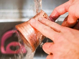 If copper dishes are not completely free of green patches, cooking in it is absolutely unacceptable! If the thing is large and you do not have a container where you can put it, you need to thoroughly scrub the surface with half a lemon, then a soft brush, and then rinse.