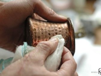 If there is no vinegar at home, baking soda will replace it, it also relieves copper from oxide quite well. Soft fabric is soaked in warm water and lightly sprinkled with soda, the product is wiped in a circle, gently, slowly and without pressure. Otherwise, smudges and even scratches may appear.