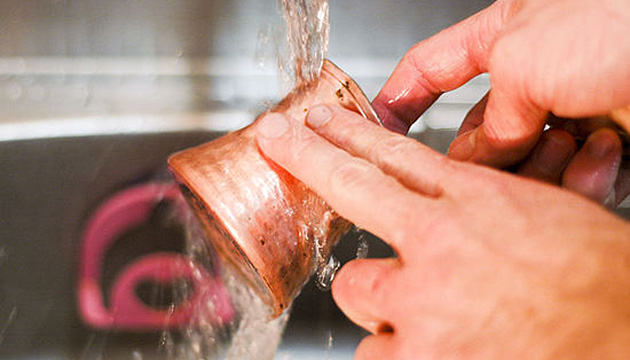 . If there are no free containers or enough time, rub the copper with fresh lemon juice, then rinse the metal under running warm water.