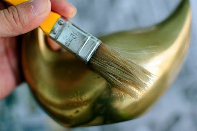 Bringing copper objects to shine will allow rubbing them with a mixture of any type of flour, table salt and vinegar (in equal proportions). After wiping, rinse the item under the tap and wipe until completely dry. However, you can do without solutions - just take a newspaper with black and white font. A small wad of paper will very quickly polish the faded surface.