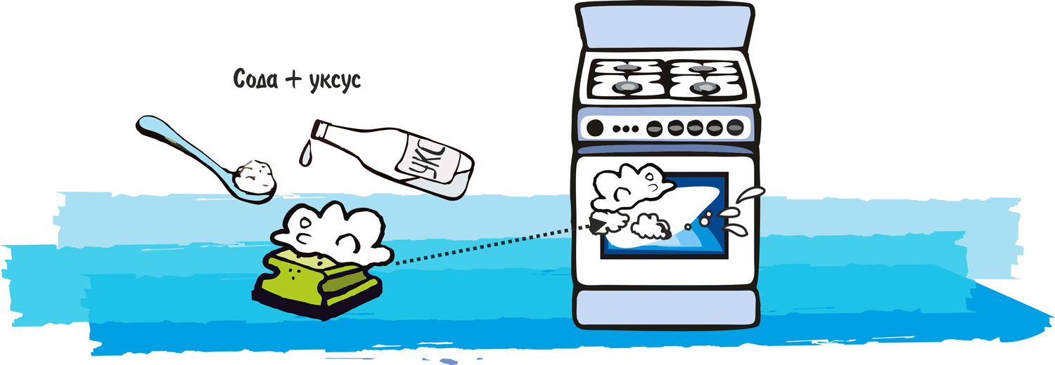 Another way is to dilute the soda with warm water to a slurry. Cover the grill with this gruel and leave for 40-50 minutes. This time is enough for the soda to react with the carbon and to a large extent soften it. Then you should clean the grill with a coarse and then soft side of the sponge.