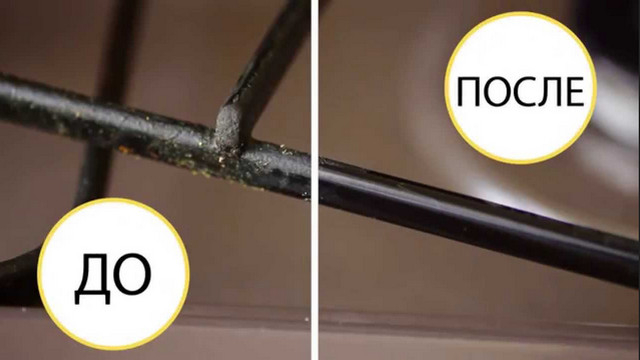 There is a simpler way: the grid is placed on a baking sheet and placed in the oven for 30 minutes (maximum burning mode). Nagar after such boiling is removed easily.