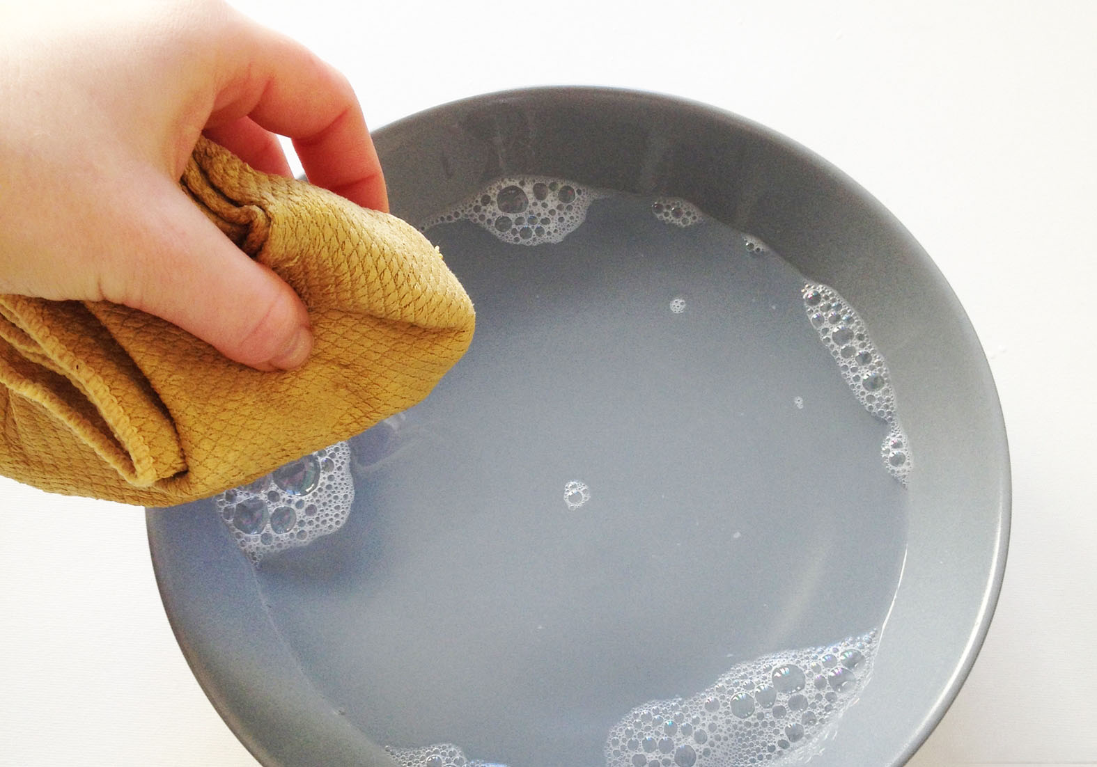 - Then it should be rinsed in water with a hard side of a sponge and wipe dry.