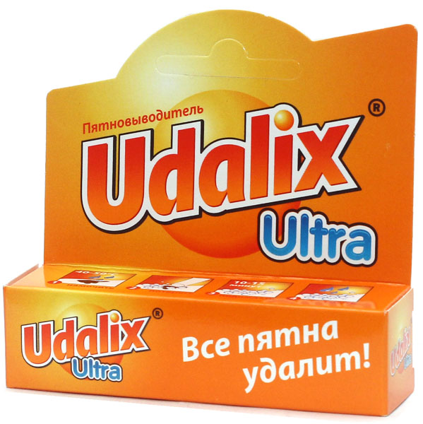 - Udalix Ultra. This stain remover comes in the form of a pencil. Traces of a ballpoint pen are moistened with water, then the agent is applied to it and rubbed with a cotton swab until foam appears. After 10 minutes, the coating is rinsed with water and wiped with dry material;