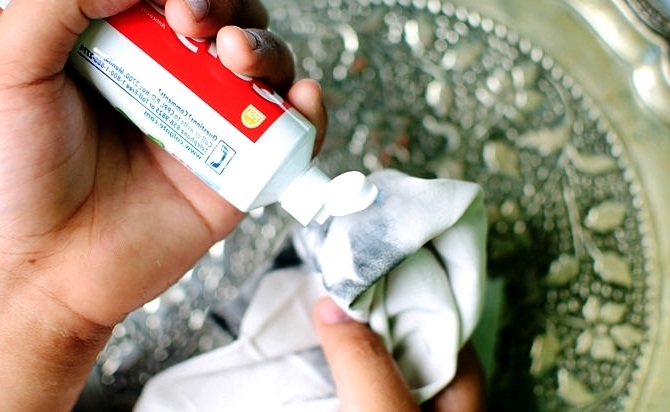 If serious repairs have begun in the house or its owners have just recently moved, it is quite possible that they will not have all the funds listed in the kitchen and in the medicine cabinet. Then ordinary toothpaste comes to the rescue. It is necessary only to put it on a toothbrush and gently rub the surface of the cross, doing it with the utmost care so as not to cause harm.