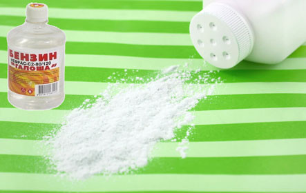 - Using talc, chalk or starch with adsorbing properties, it is easy to get rid of greasy stains. Any composition is simply sprinkled on the staggered areas, kept for an hour, and then brush off the powder with a brush.