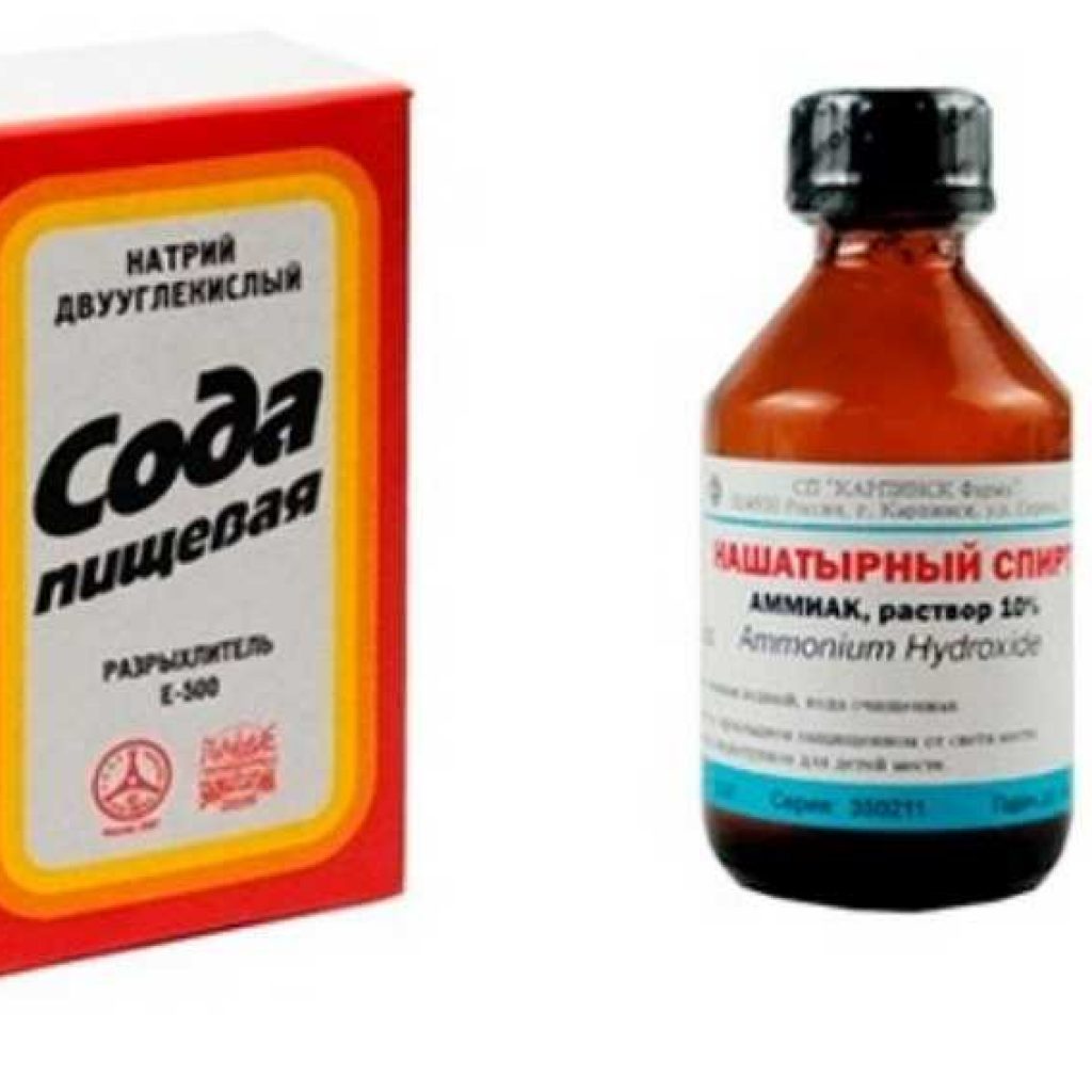 - Ammonia (5 ml) and soda (60 g). The ingredients are mixed, and then the resulting composition is applied to the problem area. Wait 10-15 minutes and remove the mixture with a damp cloth.