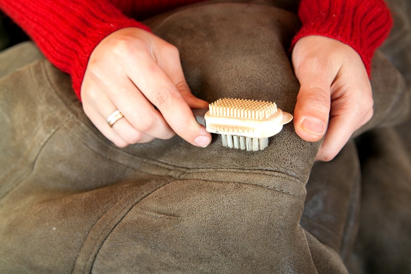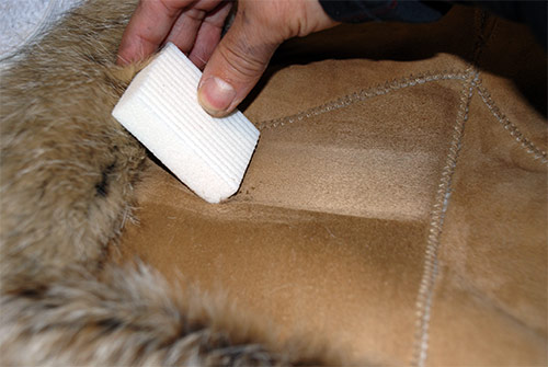 The safest method of suede processing is considered to be the sequential passage over the contaminated surface with a brush.