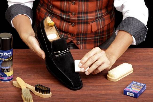 To avoid the loss of the appearance of shoes from suede, it is important to remove contamination as quickly as possible, that is, on return from the street.