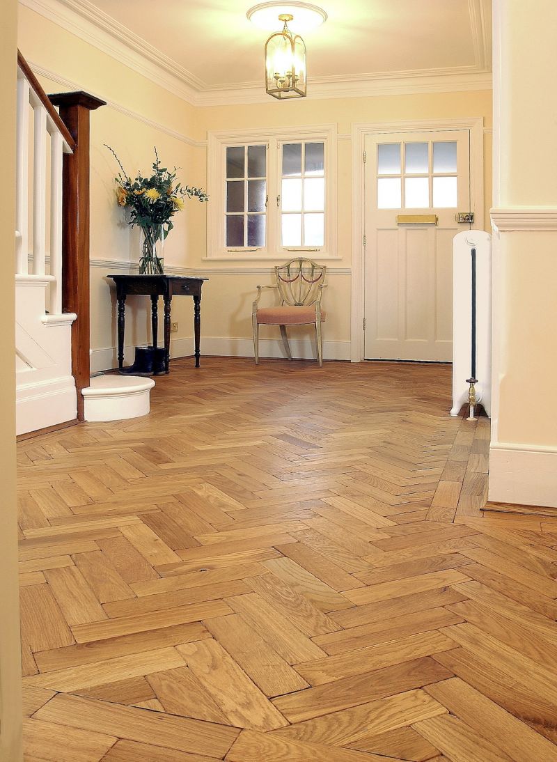 This floor is a type of varnished wood. It is also washed with a carefully wrung cloth.