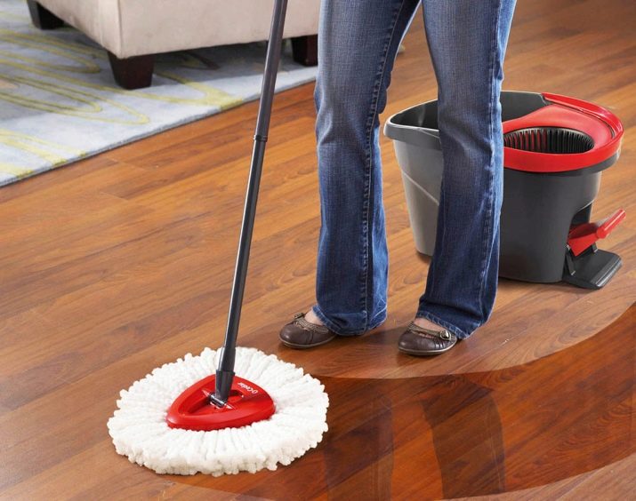 Replace contaminated water with clean water as often as possible. If the cloth is too wet and the floor remains wet, divide the covering into zones, treating each of them with a damp cloth first, then a dry cloth.