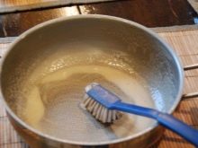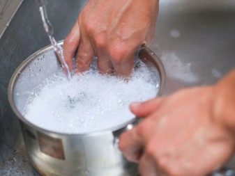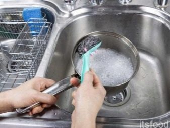 soft materials. Fabric material, a soft sponge, cotton swabs or gauze tampons will not harm the dishes. In no case can one clean an aluminum dish with hard brushes, metal sponges or scrapers, a piece of emery paper;