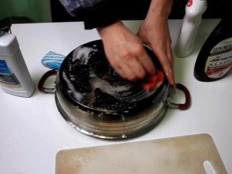 foaming detergents. Sparing neutral gels or foam from laundry soap, soap chips will clean the kitchen utensils well. Powders, abrasives should not be used;