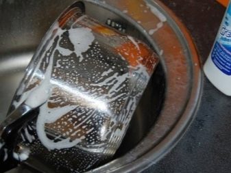 The solution of table vinegar will help restore the shine and get rid of the fat eaten into the inner side of the surface. It is better to use a weaker, 6% vinegar. Wipe the inner and outer surfaces with a soft cloth moistened with vinegar, then rinse thoroughly with tap water.