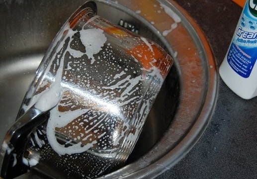 At the final stage of cleaning, the dishes should be rinsed well under running warm running water.