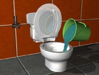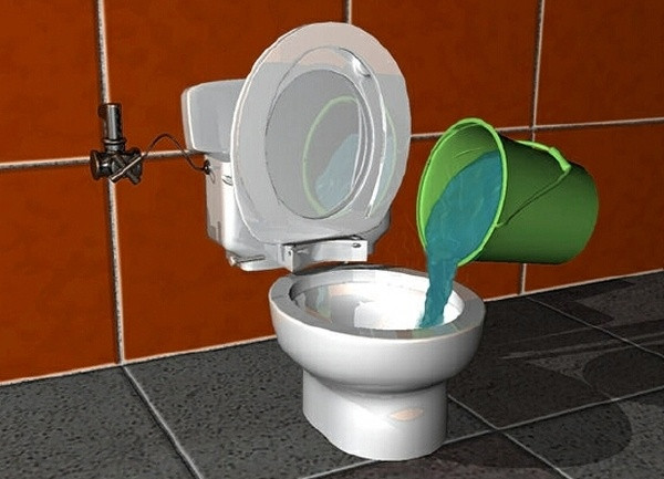 - After a certain time has passed, several buckets of hot water are poured into the toilet. This procedure is necessary in order to wash off the cleaning agent and the remnants of clogging.