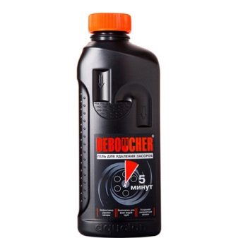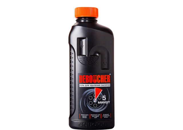 - Deboucher. It is a cleaning agent that contains not only alkali, but also chlorine. The action of the agent occurs within 15–20 minutes. Despite the fact that the substance contains chlorine, it does not have a sharp, specific smell. The disadvantages of this tool is uneconomical gel solution. For effective control of the blockage 0.5 liters of money are required. It is forbidden to use the solution for pipes made of aluminum.