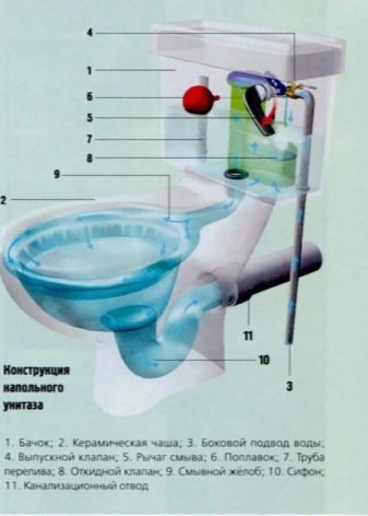 To understand what is clogged in the toilet, you need to familiarize yourself with the standard plumbing device, which consists of: