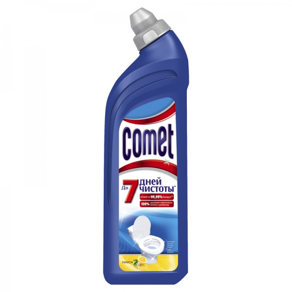 - Comet. The composition of this solution has chlorine-containing components that are able to quickly eliminate blockages in the form of lime scale, urinary stone. The use of the solution allows you to get rid of the unpleasant smell of the sewer pipe.