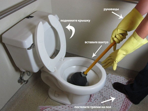 If the drain duct is difficult throughout the apartment or house, then the procedure with the help of a plunger must be performed at all points of the drain. At the same time, the lid of the toilet bowl must be closed and fixed with a heavy load so that under pressure the liquid does not extend beyond the limits of the toilet bowl.