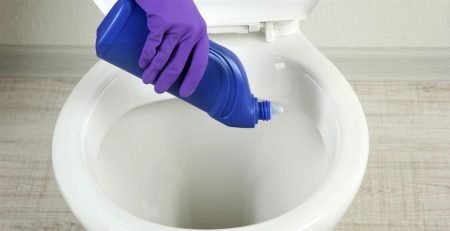 - After cleaning the sewage system, it is necessary to thoroughly flush the toilet from chemical residues, so that no solution will later fall on the skin.