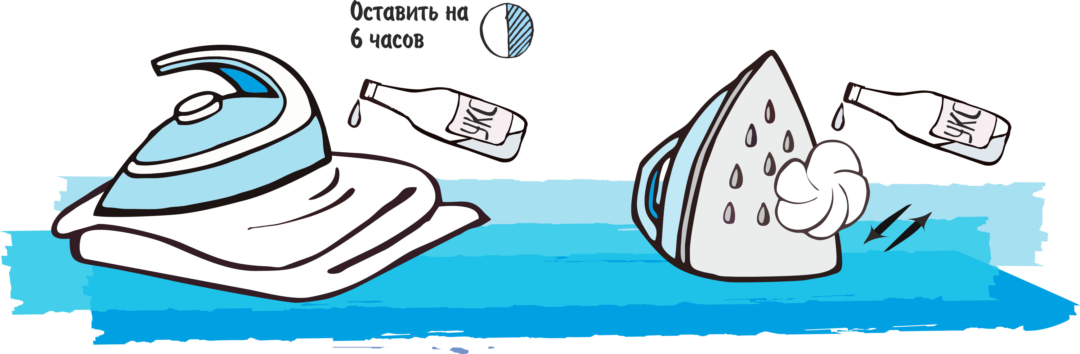 - Acetic solution. Mix water and vinegar in equal proportions and pour the resulting liquid into 2/3 of the tank. Install the iron in an upright position and heat to maximum temperature. Leave the device alone for 5-10 minutes. During this time, the device will randomly turn off and on again, do not interfere with this.