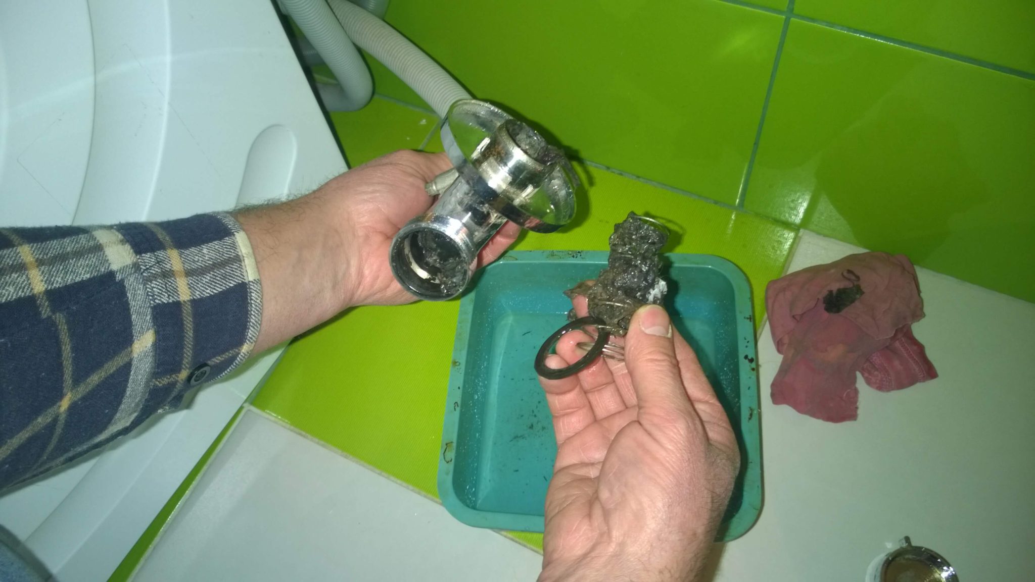 - Further, You can start cleaning the filter itself. Remove naktirutsya hair, threads, pieces of fabric, wool and other visible debris. Rinse the filter element under running warm water. To remove limescale, you can also soak the drain filter in citric acid solution as described above.