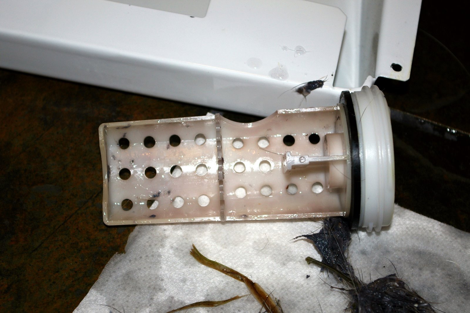 - It is necessary to immediately check the drain filter element, If your automatic machine has turned off during the spin cycle or water drain.Also a sign of clogging of the drain filter is an uneven discharge in small portions, an unusual buzz of the machine during the descent of water.