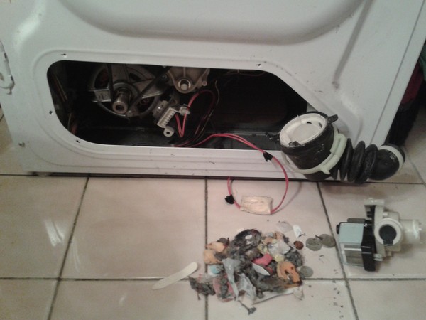 - Try to keep a lot of rubbish, sand, small objects in the washing drum. It is better to shake clothes with strong sand, earth or clay contamination over the bathtub or to brush off the dry dirt. Check the pockets of clothing, do not leave there small items, candy wrappers, paper, coins. These simple steps will help to significantly reduce the clogging of the drain filter.