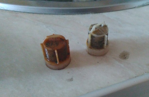 - Carefully inspect the condition of the element and filtering mesh. In the presence of rust or other contaminants, the filter should be rinsed under running warm water. and brush the old toothbrush. For better cleaning, you can use soap.