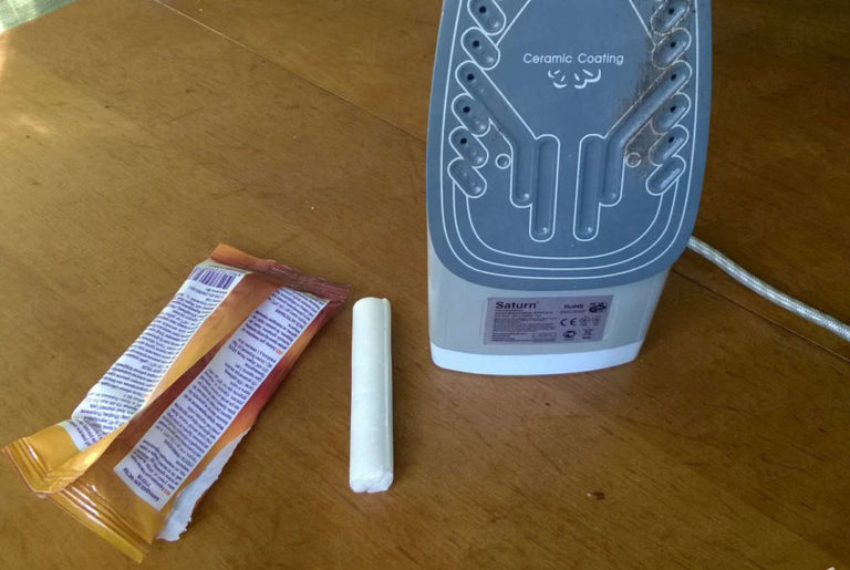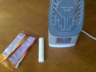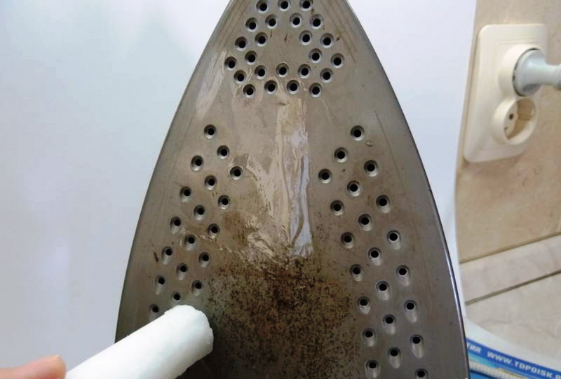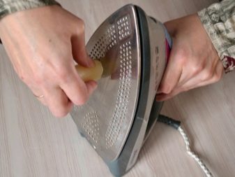 - wax candle - suitable only for removing fresh dirt; it is necessary to rub the ironing surface with wax candles, and then with the effort to remove it with a cotton cloth;