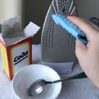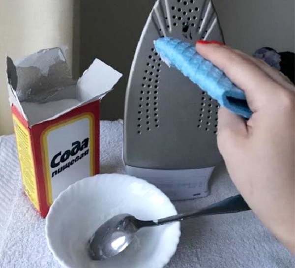 - a slurry of soda and a small amount of water — in this case, you do not need to heat the iron;