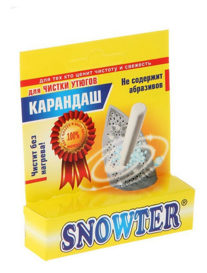 Almost all pencils are universal. Their composition does not include abrasives, so the tool can not scratch the sole of the iron and is ideal for cleaning any ironing surfaces: aluminum, teflon and ceramic coatings. They gently cleanse from any dirt, gently remove scale and carbon deposits. In contact with the hot sole of the iron, the cleaning pencil will begin to melt, interacting with the bloom. Under the influence of high temperature and acid pollution dissolves almost instantly and without residue. It is enough to carry out the procedure one or a maximum of two times, and the surface of the iron will shine like new.