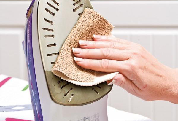 - it remains only to remove the remnants of the dried-up remedy along with the contamination with a cotton natural rag after the iron surface has completely cooled down; you can even wipe the iron sole with a damp cloth to completely remove the paste residues;