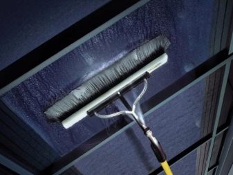 A small-sized brush (scraper) with a rubber nozzle, called a screed, will help to expel water or foam after washing the glass with a rag or sponge from a small window. The tie can be of different widths, have an elongated or very short handle. An important requirement for such a model is a tight fit of the rubber layer to the body, as well as evenness and height of the rubber layer.